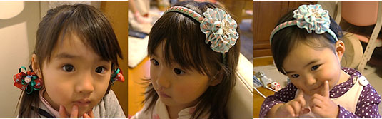 | 先日、幼稚園のクリスマス会にリボンをしていったら、みんなに可愛いと言われてきました。 クリスマスのクリップは小さい子の髪飾りにするとすごく可愛かったです! 一歳半の娘は髪を結わくのにはまだ髪の毛が少なく、クリップだとちょうどよかったです! カチューシャは全体のバランスを考えるのがむずかしかったです。でも出来上がるとすごく立体感があって、華やかでした。 女の子はピンクと思っていたのですが、グリーンベースがまた可愛らしくて娘達は嬉しそうに付けていました。 可愛くて娘達が目をキラキラさせていてパレットリボンさんのキットはいつもありがたいです。 可愛いデザインのリボンありがとうございました。 2014.12.19 神奈川県 S様 |