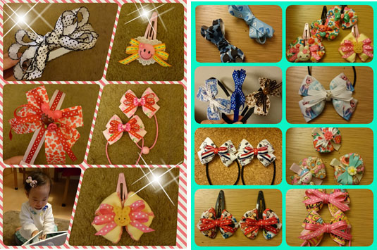 アナ雪のかわいいリボンや妖怪ウォッチの生地をみつけ、手探りでリボンづくりをしたものの… んー。